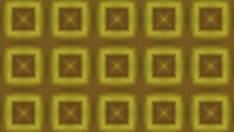 Unique kaleidoscope colorful design with blinking squares. Motion. Symmetrical repeating pattern with yellow figures. Pro Video