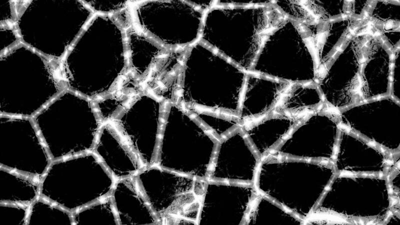 Lines of glowing pattern with moving cells. Design. Changing cell patterns with bright lines on black background. Pulses in moving patterns with geometric cells Pro Video