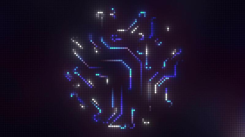 Virtual animation with moving brain neurons. Motion. Glowing lines moving in shape of brain. Computer animation of movement of impulses in brain gyrus Pro Video
