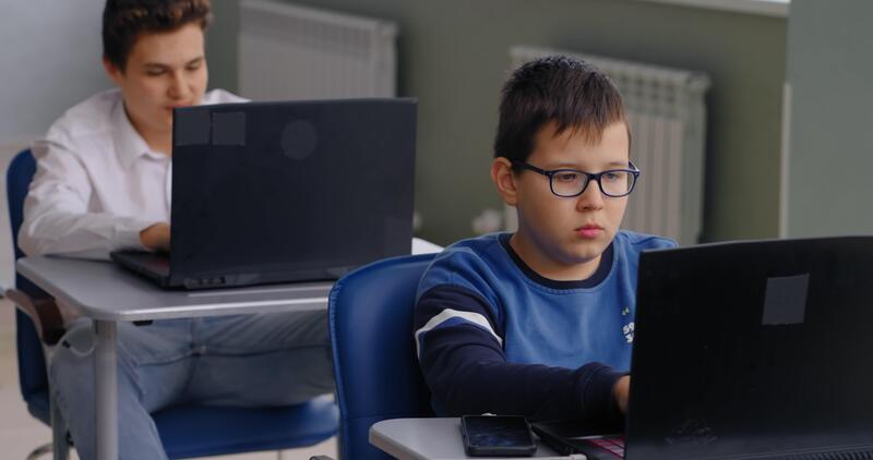 School Students In Modern Computer-Based Classroom In School, Education Of Programming Languages Pro Video