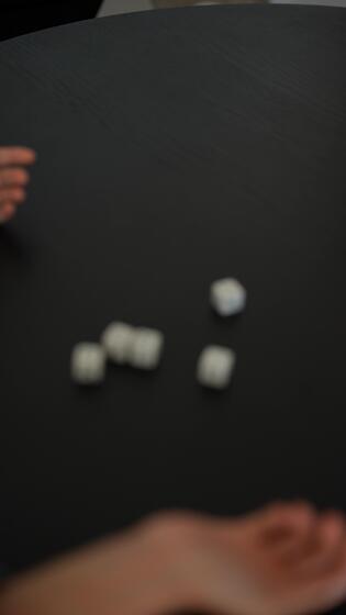 Hands are actively rolling dice on a black table, creating an entertaining gaming scene Pro Video
