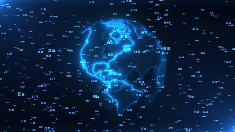 Abstract earth rotation, big data, digital clouds. Global network connection and data connections concept. Communication technology global world network. 3D animation. Pro Video