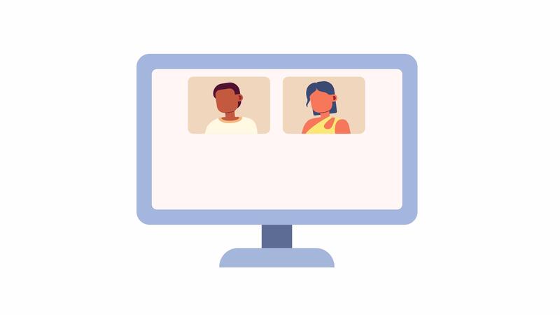 Videoconference meeting computer screen 2D object animation. call with remote employees team flat color cartoon 4K , alpha channel. Online webinar animated item on white background Pro Video