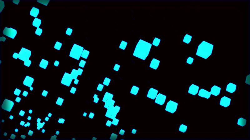 Stream of pulsating cubes in space. Design. Glowing cubes in air. Animation with flying 3d cubes in stream on black background Pro Video