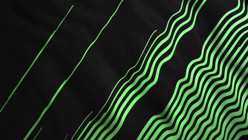Animated 3D waving cloth texture with green and black diagonal stripes, seamless loop. Motion. Smooth silk cloth surface with ripples and folds in tissue. Pro Video