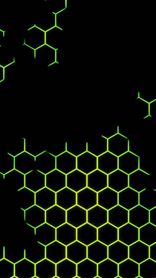 Modern geometric background with hexagon shapes. Design. Green and black animation of a hexagonal grid. Pro Video