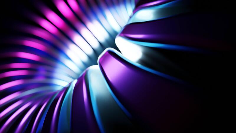 Purple and gray oscillating lines creating a tunnel. Design. A hole in the animation from which light ribbons depart in 3d format. Pro Video