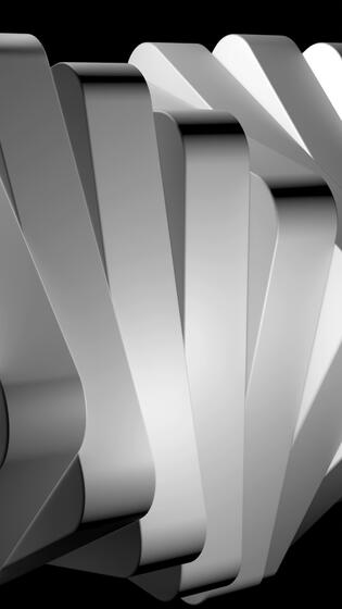 Geometric vortex with 3d effect of dynamically spinning tiles, seamless loop. Design. Horizontal pillar formed by spinning grey flat blocks on a black background. Pro Video