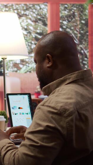 Vertical Professional IT engineer at his desk working on AI coding and deep learning projects, showcasing innovation in software development and cloud computing. Internet of things. Camera B. Pro Video