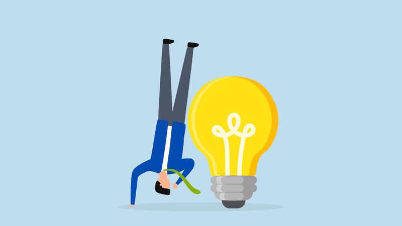 Think different to create unique idea, 4k animation of businessman who tries to think of idea with light bulb in another position. Pro Video