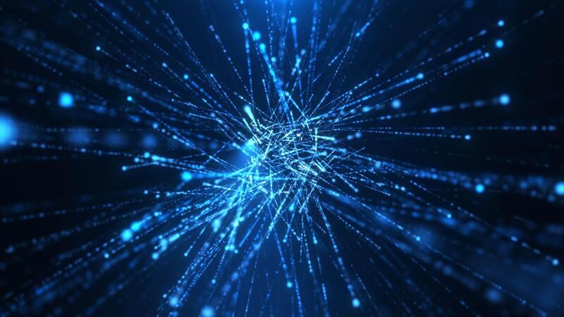 Abstract light streaks of particles. Big data digital neon lines. High tech background. Seamless loop Pro Video