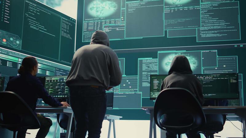 Pleased proud hackers team jumping around after gaining access into rival government database, feeling happy about their success. Professional IT experts hacking network systems. Camera B. Pro Video