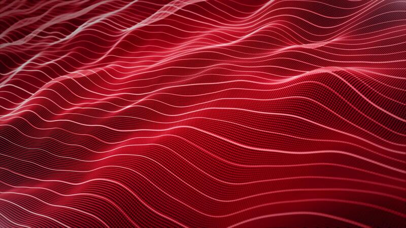 Looped background with shiny red stream of waves made of glowing particles and curvy lines with white light and shadows. Computer science and digital data flow screensaver. Seamless vj loop , 4K 60fps Pro Video