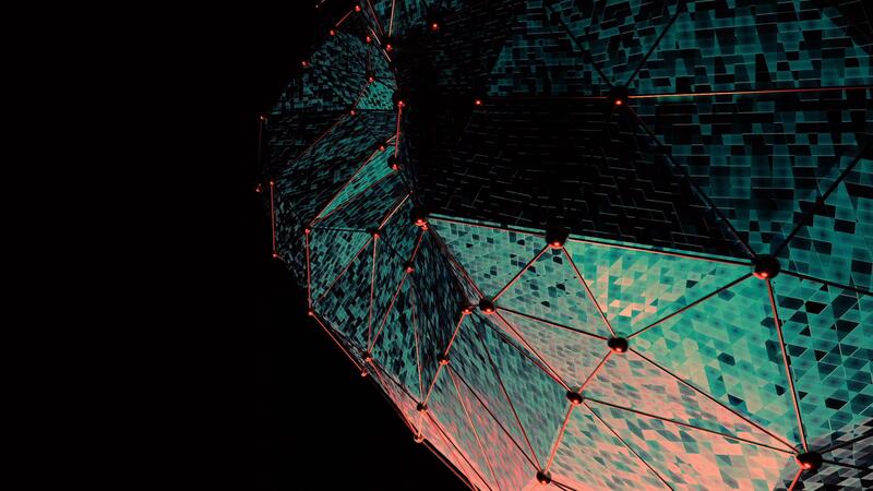 Black background.Design. A blue geometric figure in 3d format that oscillates triangles forward in abstraction. Pro Video