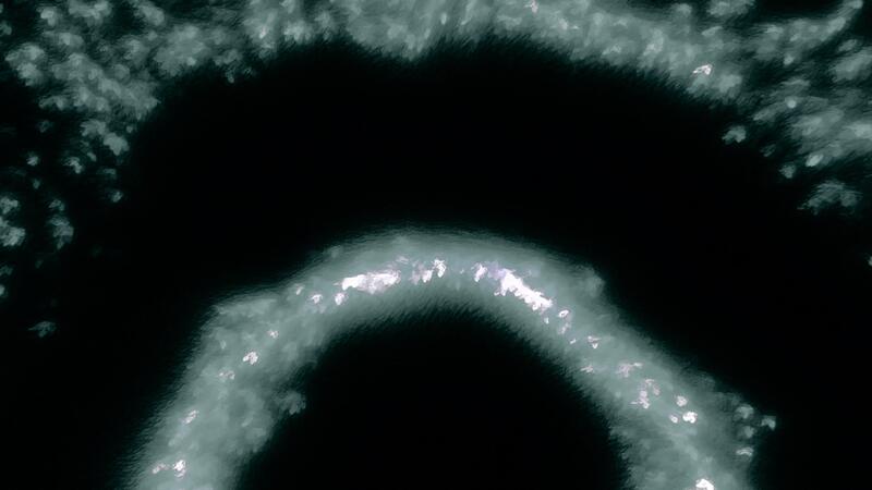 Dark background with moving 3d animation. Motion. White circles made of bubbles in animation that twitch in different directions. Pro Video