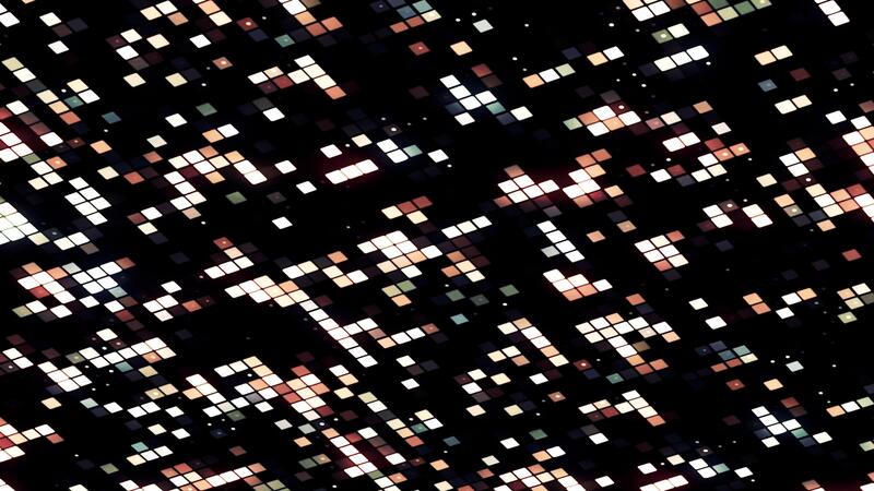 Abstract field of blinking rows of tiny squares on a black background, seamless loop. Motion. Small particles shimmering pattern. Pro Video