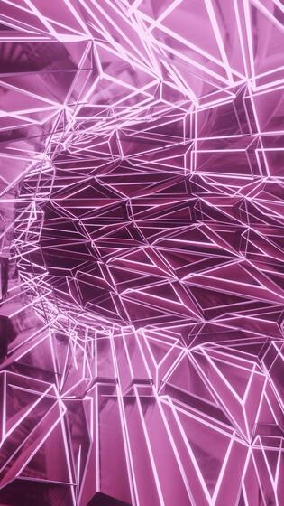 A bright and interesting tunnel. Design. Red tunnels made with the help of various rays of light in an abstraction that moves deep into the tunnel with illuminated lanterns without end. Pro Video