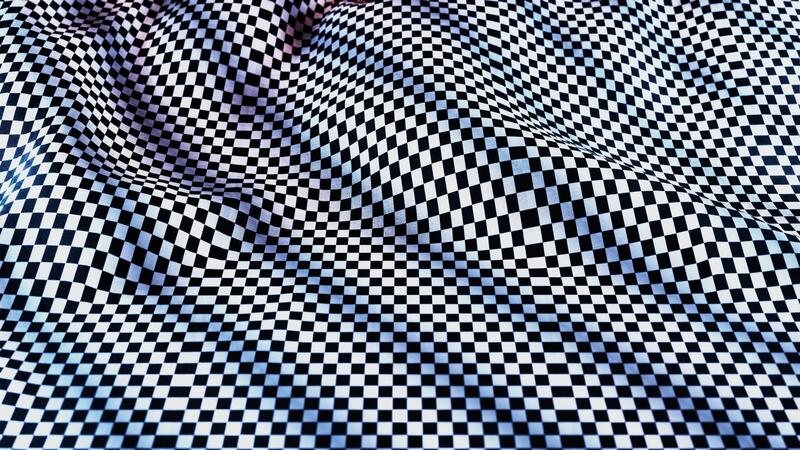 Abstract checkered with black and white plaids waving slowly, motions of flowing-textil graphics, modern background design. Tablecloth material fabric loop with relextion, 3D render animation Pro Video