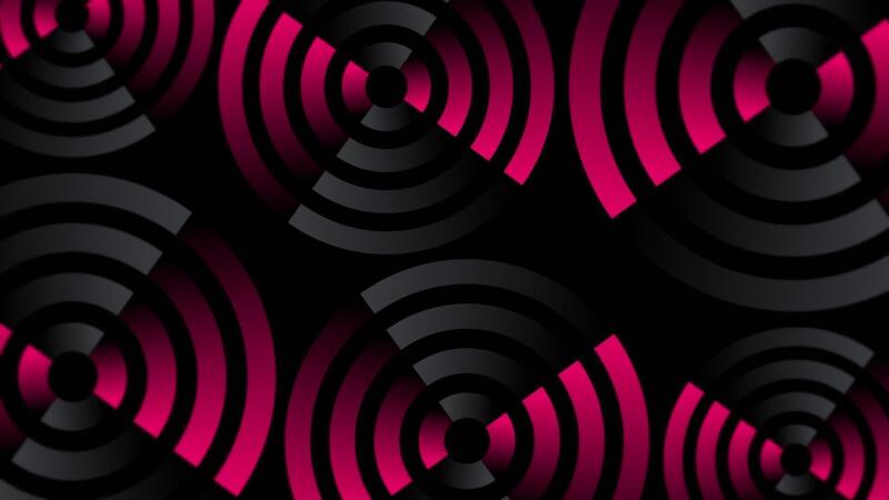 Dynamic abstract background with vibrant magenta concentric circles set against a sleek black background. Striking geometric pattern perfect for technology, music, and entertainment projects. Free Video