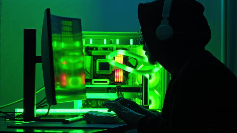 Hacker commits a cyberattack from his hiding place. He types a code on the keyboard. Close up. Slow motion. Pro Video