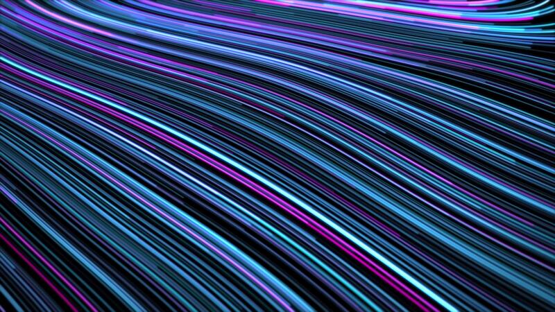 Digital background with pink and blue neon light streaks and smoothly floating signal lines. Futuristic data trace for computer science and internet connection with bright glow effect. 4K 30fps Pro Video