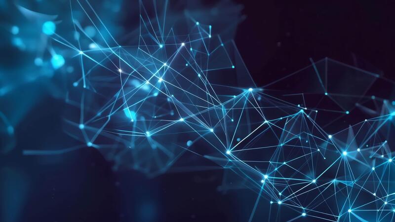 Abstract digital network background with blue glowing connections representing data flow and communication in a technology-driven world. Free Video