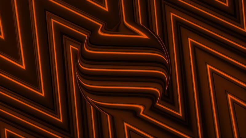 Abstract black and orange background with a sphere silhouette and zigzag pattern. Motion. Round shaped object with a mirror effect, seamless loop. Pro Video