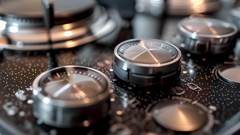 Up close on the control dials of a portable induction cooker highlighting the precision and accuracy of the temperature and power adjustments each marked with corresponding number Pro Video