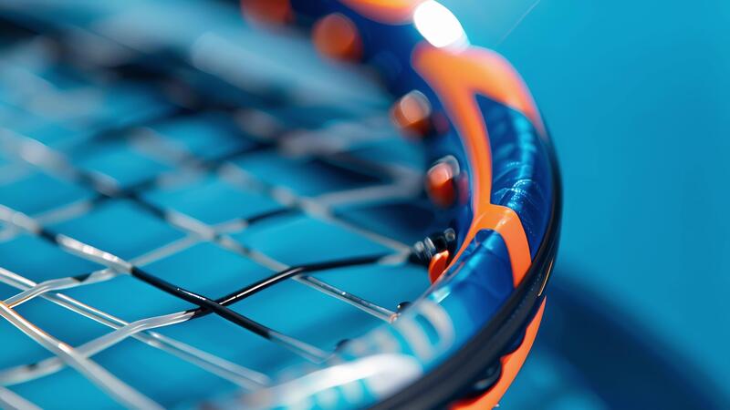 A macro image of the unique string pattern on a premium racket optimizing power and enhancing ball control for advanced players Pro Video