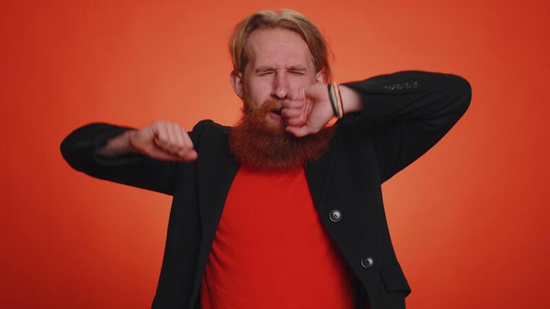 Tired man yawning sleepy inattentive, feel somnolent lazy bored gaping suffering from lack of sleep Pro Video