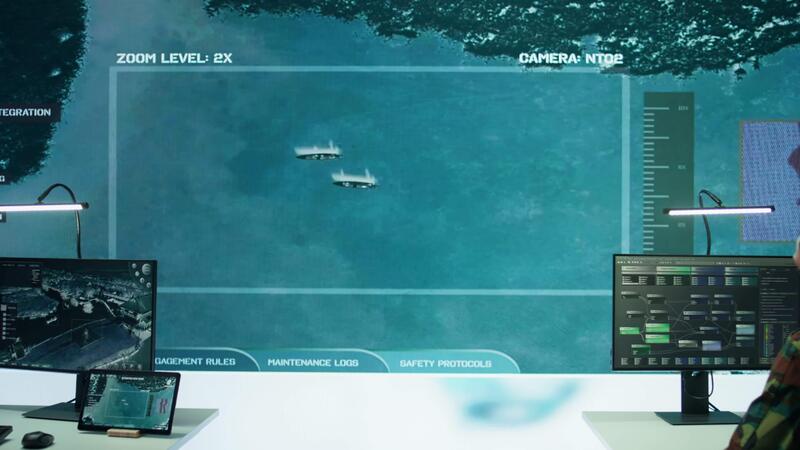 Military crew in a high tech operations command post managing information from radar cctv systems, real time data to support defense missions. Army protocols for national security. Camera B. Pro Video
