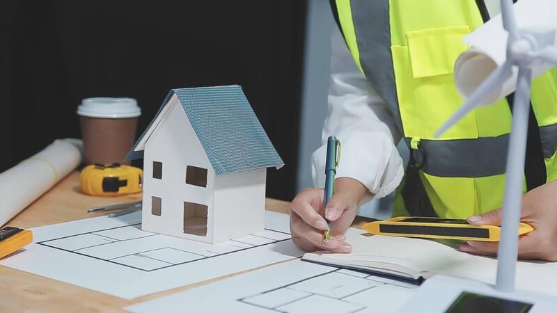 A foreman sits at a desk in an office, Calculating costs, Planning construction, Calculating structures, Planning and calculating project construction costs, Project presentation plan. Free Video
