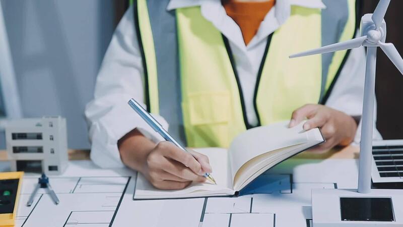 Architect working on blueprint.engineer inspective in workplace - architectural project, blueprints,ruler,calculator,laptop and divider compass. Construction concept. Engineering tools, Free Video