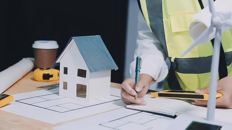 Architect working on blueprint.engineer inspective in workplace - architectural project, blueprints,ruler,calculator,laptop and divider compass. Construction concept. Engineering tools, Free Video