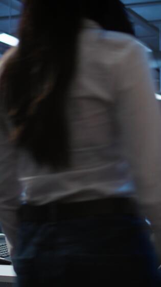 Vertical Data center network engineer designing, implementing and managing infrastructure to ensure optimal performance and reliability. IT expert in server room coding on computer, camera B Pro Video