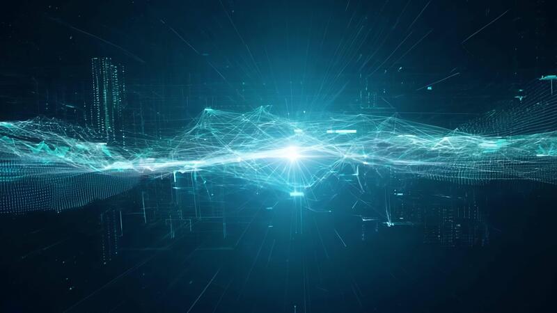 In a stunning display of futuristic design particles blend and merge to form a dynamic digital matrix a visual representation of the evolving world of technology.. Pro Video