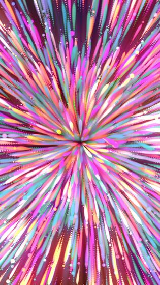 Colorful explosive flow with moving lines and particles. Motion. Luminous bright stream of energetic particles from point. Explosive ceiling of colorful glowing energy Pro Video