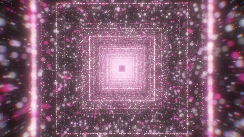 Squared digital tunnel, blurred flying dots, seamless loop. Motion. Flying through 3D glowing tunnel in outer space. Pro Video