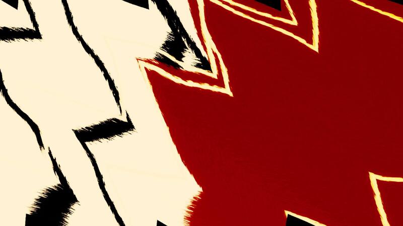 White and red patterns with black lines. Motion. Spilled bright paint in animation that twitch and spread in abstraction. Pro Video