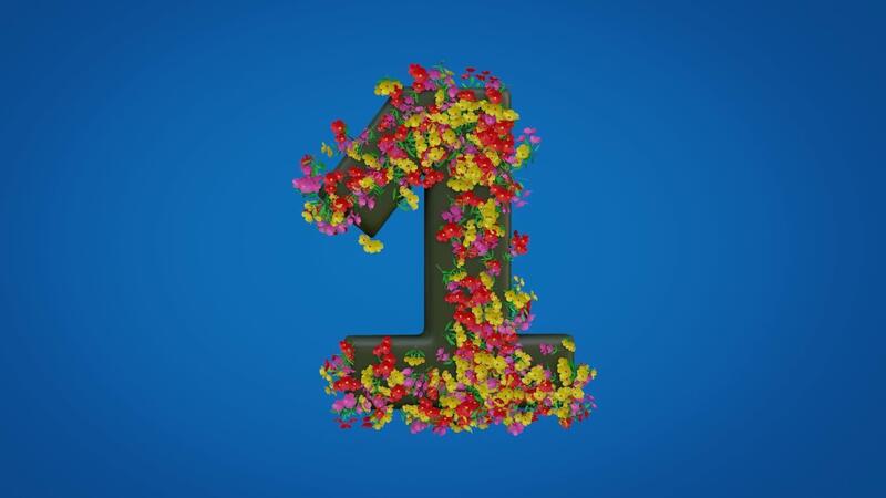 The 3d number one moving right and left is designed in a colorful floral style on a blue background. The animation of the number 1 is equipped with luma mate. 3d rendering Free Video