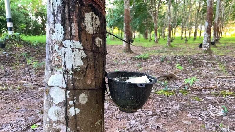 Natural Latex Slowly Dripping From A Rubber Tree, Rubber tapping until latex is slowly dripping from the tree, Close-up of Bowl for collecting latex from a rubber tree Free Video