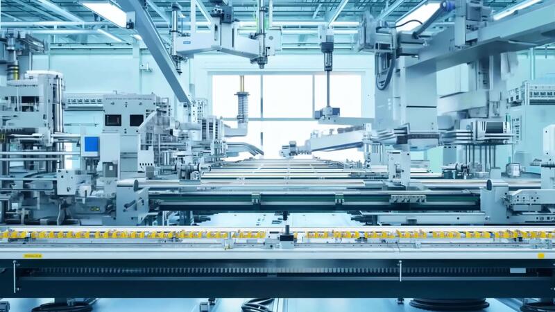 Animated factory floor with automated robots for product assembly Using stock images of precision manufacturing Free Video