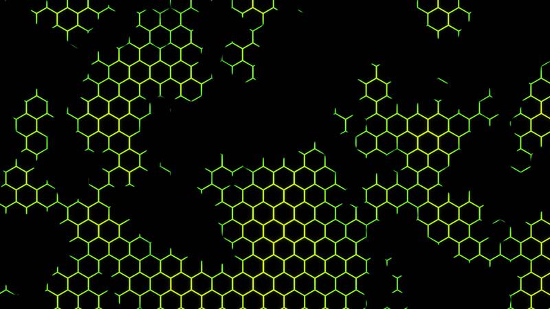 Modern geometric background with hexagon shapes. Design. Green and black animation of a hexagonal grid. Pro Video