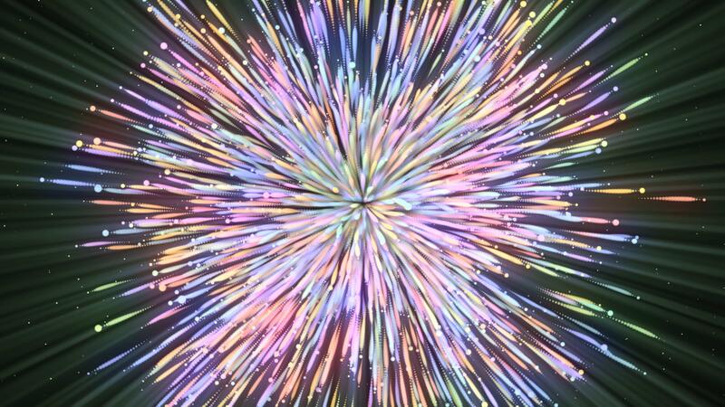 Bright colorful explosion of particles in stream. Motion. Cosmic hypnotic explosion of colorful particles. Explosion of particles propagating in outer space Pro Video