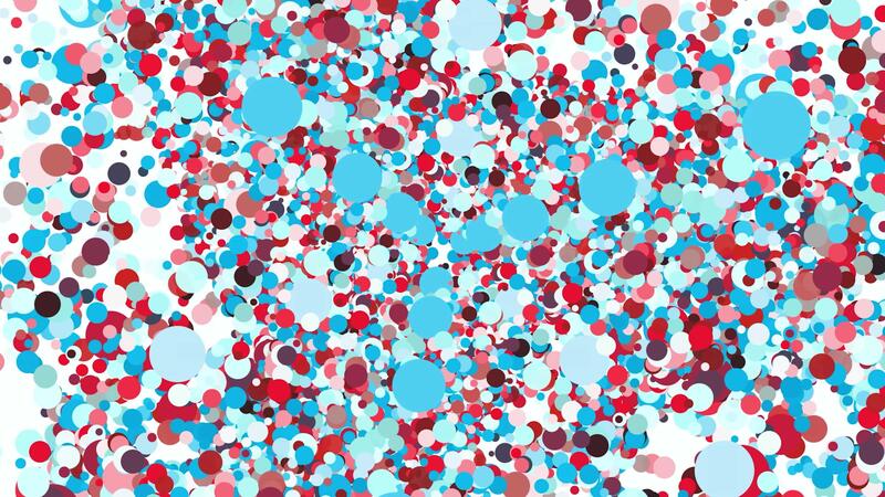 White background. Motion.Small red and blue circles appear in the animation and fill the entire space in the animation. Pro Video