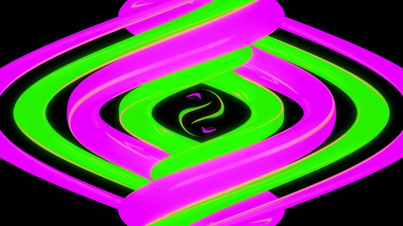 Abstract green pink spherical objects with ripples around. Design. Swirling colorful background with hypnotic effect. Pro Video