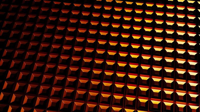 3D background with light illusion of shadows on squares. Design. Bronze squares create three-dimensional background with shadows. Light moves and creates illusion of shadows on square background Pro Video