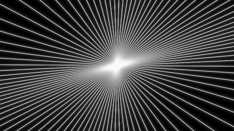 Black background. Design. Bright animation on which yellow and white stripes create patterns that rotate in different directions. Pro Video