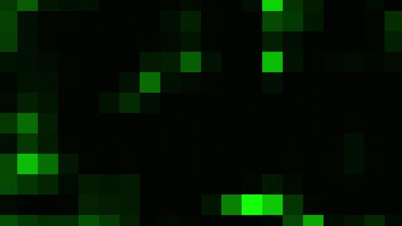 Background with moving pixels. Design. Colored pixels move on black background. Pixel background with moving patterns or spots squares Pro Video