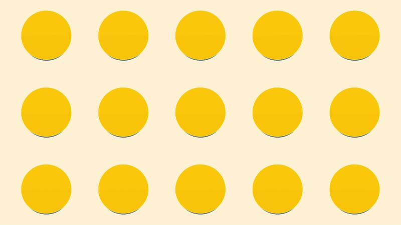 Rows of small circular icons changing colors. Motion. Dynamic pattern with rows of circles blinking with color change on a white background. Pro Video